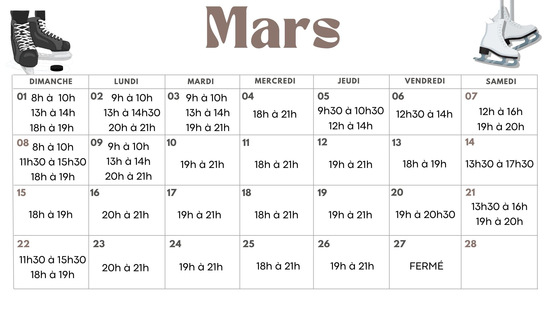 HORAIRE AIGUISAGE DE PATIN (1 au 28 mars)