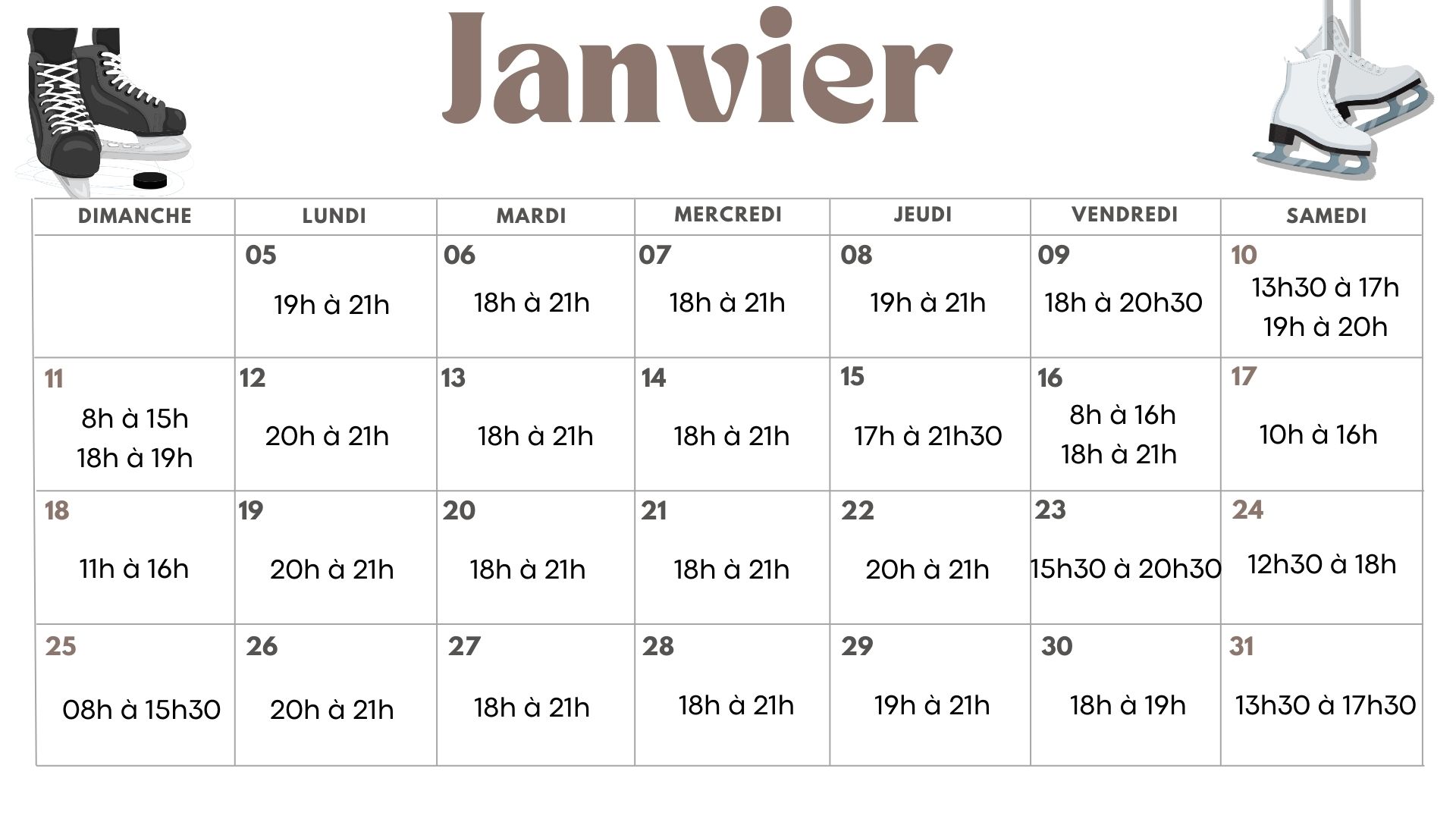 HORAIRE SALLE D'AIGUISAGE DE PATIN (5 au 31 janvier)